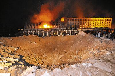 據(jù)香港《文匯報(bào)》報(bào)道,巴基斯坦新總統(tǒng)扎爾達(dá)里剛剛上臺不久,便發(fā)生今次恐怖襲擊。就在爆炸發(fā)生前,他還在距離酒店數(shù)百米的國會首次發(fā)表演講,聲稱必須鏟除恐怖主義。雖然還未有組織承認(rèn)發(fā)動襲擊,但估計(jì)與新政府決心繼承前總統(tǒng)穆沙拉夫的親美路線不無關(guān)系。