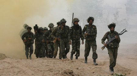 據(jù)香港“亞洲時報在線”披露,印度軍方在對華軍事準備方面,已從原來“西守東攻”的策略改為“西攻東守”,即印軍在東段處于防守地位,確保靠近西孟加拉邦北部的西里古里走廊(印度內(nèi)地與東北部各邦的唯一陸上通道,但它夾在孟加拉國、中國和不丹三國國土,最狹小處僅寬22公里)暢通,而在西段,印軍將以進攻態(tài)勢為主,利用人數(shù)和裝備優(yōu)勢,割斷中國和巴基斯坦的戰(zhàn)略聯(lián)系,從而獲得戰(zhàn)略優(yōu)勢。