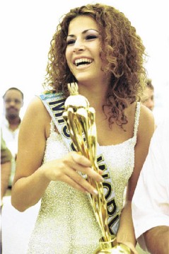 1998年世界小姐艾巴吉當年在塞舌爾贏得后冠時的照片。