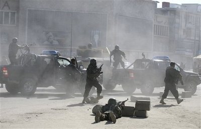 另據(jù)新華網(wǎng)報(bào)道,有目擊者稱,恐怖分子一度占領(lǐng)了司法部大樓,并用自動(dòng)步槍瘋狂掃射。目前,警方已奪回對(duì)大樓的控制權(quán),并打死至少4名恐怖分子。此外,在阿富汗安全情報(bào)部附近,安全人員也打死2名準(zhǔn)備發(fā)動(dòng)自殺襲擊的恐怖分子。恐怖分子當(dāng)天還向位于喀布爾北部的一座政府建筑發(fā)動(dòng)了襲擊。