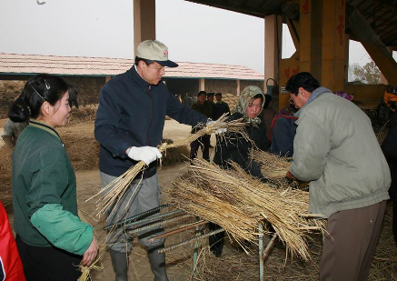 劉曉明大使一行首先來到打谷場,同當地農場員們一道把一個個稻捆送進大型脫谷機,然后把脫谷后剩下的秸稈扎捆,送進倉庫。使館同志和農場員有的碼垛,有的搬運,有的擰麻繩,大家為了共同的豐收忘我地勞動。機器的轟鳴猶如歡慶的鑼鼓聲、粒粒稻谷送來的是豐收的喜悅。