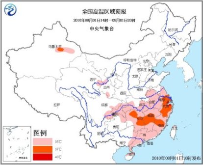 中新網8月1日電 中央氣象臺今日10時發布高溫橙色預警: