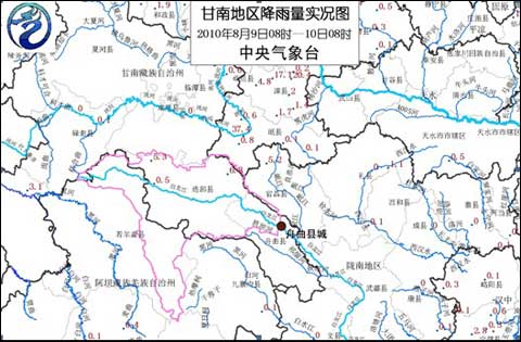 昨日08時(shí)至今日08時(shí),除迭部縣扎尕那、臘子口及迭部出現(xiàn)5.3毫米、6.3毫米及0.5毫米降雨外,舟曲縣城及白龍江上游基本無降雨,今日08時(shí),舟曲縣城陰,氣溫24.2℃,東南風(fēng)4米/秒。