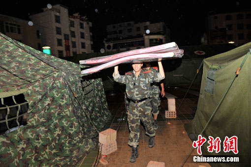 中新網舟曲8月11日電(記者 唐偉杰 劉賢)晚上8點半左右,在數十分鐘的密集電閃雷鳴后,舟曲災區開始降雨,目前雨勢較小。據氣象部門預報,今晚舟曲雷陣雨轉中雨,明天預計繼續有中雨。