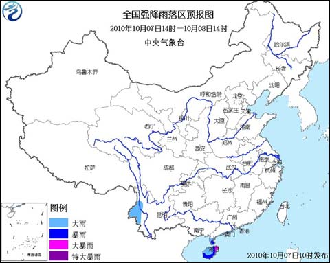 中央氣象臺10月7日10時繼續發布暴雨藍色預警: