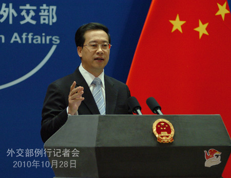 中新網(wǎng)10月28日電 據(jù)外交部網(wǎng)站消息,2010年10月28日,中國(guó)外交部發(fā)言人馬朝旭主持例行記者會(huì)。答問(wèn)如下。
