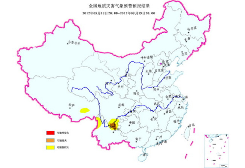 中新網9月19日電 國土資源部今日在其官方網站上發布9月18日-19日全國地質災害氣象預警預報結果。預報稱,云南北部局部發生地質災害的可能性大。