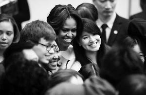 米歇爾是在新任駐華大使馬克斯·鮑卡斯及其夫人的陪同下來到北大的。在米歇爾演講前,王恩哥校長在致辭中表示,歡迎美國學(xué)生以及奧巴馬總統(tǒng)的兩個(gè)女兒來北大讀書。
