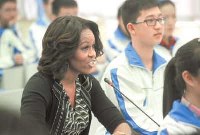3月25日,美國(guó)總統(tǒng)奧巴馬夫人米歇爾·奧巴馬走進(jìn)成都七中,熱情洋溢地發(fā)表了她首次訪華期間的第二場(chǎng)演講!傲己玫慕逃钦l都無法從你身上拿走的東西!”通過分享自己的求學(xué)經(jīng)歷,米歇爾鼓勵(lì)年輕學(xué)子把握機(jī)會(huì)努力學(xué)習(xí),用“才華、創(chuàng)造力和能量”解決人類共同面臨的問題。