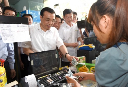 臨走前李克強(qiáng)說,耽誤你做生意了,來了就消費(fèi)一下,說著便掏錢買了一罐椰子脆片和一盒蛋卷,共計(jì)19元。