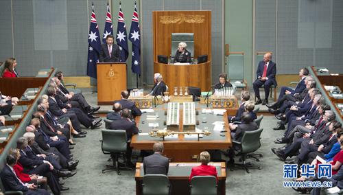 11月17日,國家主席習近平在澳大利亞聯邦議會發表題為《攜手追尋中澳發展夢想-并肩實現地區繁榮穩定》的重要演講。新華社記者謝環馳攝