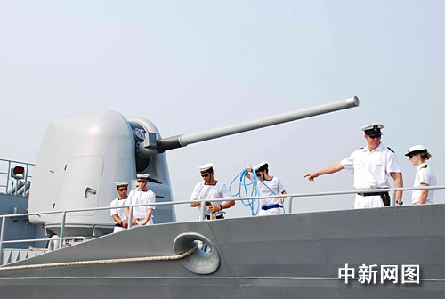 中新網10月19日電 今天上午,由新西蘭海上部隊司令大衛•安森準將率領的“特卡哈”號護衛艦,在雄壯的軍樂聲中緩緩駛抵廣東湛江港,開始對海軍南海艦隊進行為期4天的友好訪問。由“特卡哈”艦上毛利族及其他艦員自愿參加組成的合唱小分隊,在中國海軍碼頭演唱了毛利族歌曲,令人耳目一新。
