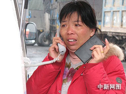 一月二十八日傍晚,廣東京珠北韶關(guān)境內(nèi),來自湖北襄樊的龐女士一邊流淚一邊與家人報(bào)平安。因冰雪擋道,龐女士乘坐的客車被迫滯留路上。中國移動韶關(guān)分公司免費(fèi)提供流動無線電話車讓滯留旅客向家人報(bào)平安。