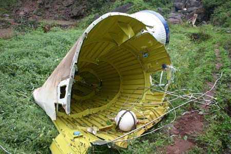 火箭助推器殘骸,火焰映紅半邊天