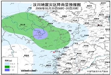 汶川地震災區降雨量預報圖(20日08時-20日20時)