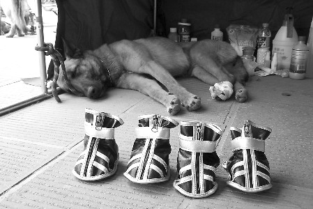 山東搜救犬累壞了 有關部門配制“犬鞋”(圖)