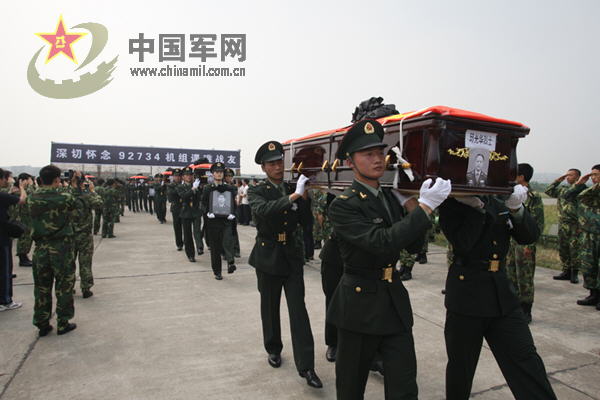 今天上午10時(shí)30分,運(yùn)送失事直升機(jī)機(jī)組成員靈柩的汽車,緩緩駛進(jìn)某陸航團(tuán)鳳凰山機(jī)場(chǎng)。迎送烈士靈柩儀式正式開(kāi)始。