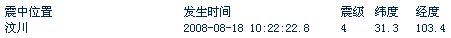 據(jù)地震臺網(wǎng)測定,北京時間8月18日10時22分,在汶川(北緯31.3,東經(jīng)103.4) 發(fā)生4.0級地震。