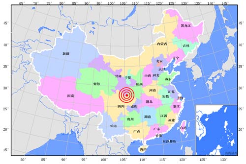 中新網9月12日電 據中國地震臺網測定,北京時間9月12日凌晨1時38分,在甘肅省隴南市武都區、陜西省漢中市寧強縣交界(北緯32.9度,東經105.6度) 發生5.5級地震,震源深度約6公里。受影響地區包括震中50千米范圍內的縣城和200千米范圍內的大中城市。