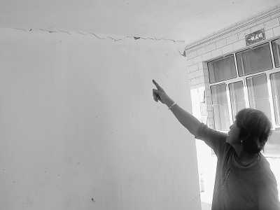 好景不長,新房很快也出現一道道裂縫,村民惶恐不安。在新村采訪時,秦文清、武須信、武旭忠等幾位村民爭先恐后地拉記者去自己家里看墻上的裂縫。村民王改女家的堂屋、臥室、廚房、衛生間,幾乎每間房都有大大小小的裂縫,她說住著害怕,可又找不到避難的住所(見圖①)。