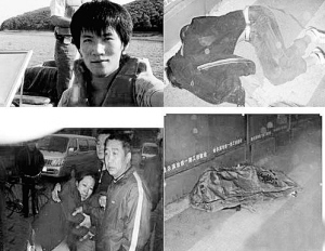 潘興聽到楊森喊,隨即看到林松嶺赤著上身很快跑過去,后面幾人在追。潘興回憶,當天林松嶺穿著一件黑色的小風衣,“外套是他自己脫掉的,但襯衫怎么沒有了我不知道!迸伺d追出去幾十米后,看到林躺在地上,身體蜷曲著!拔野情_正在打松嶺的人說別打了,后面就有人抓住我的頭發把我摁住,不知道有幾個人照著我的頭不停地踢!