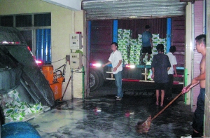 前天晚上7時許,位于廣州石井潭村附近的垃圾壓縮站內,先后兩輛大貨車將數百箱不合格盒裝牛奶運送到此然后集中進行銷毀。大量液態奶在這一過程中被直接排放到附近的石井涌內,附近居民表示因為天熱牛奶發酵導致臭氣沖天。昨日,記者再次來到該垃圾壓縮站,已經有當地政府部門工作人員趕到現場清理,并未有再次銷毀牛奶情況出現。