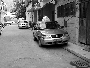 在三亞一小區巷道內,一輛出租車未出車。
