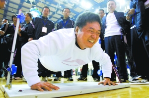 浙江舉行公務(wù)員體能比賽 測(cè)試俯臥撐坐位體前屈