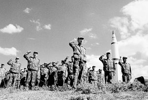 今朝長纓在手,敢縛出海蛟龍。1996年3月,在我國東南沿海舉行的那場規模宏大的軍事演習中,一枚枚威武挺拔的新型導彈,在群山環抱中起豎聳立。“點火!”隨著命令傳出,驚雷搖撼大地,閃電劃破長空,一枚枚導彈呼嘯著飛向預定目標……顯示了中國人民捍衛國家主權和領土完整的堅強決心,展示了第二炮兵的軍事打擊能力。