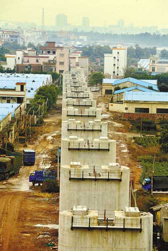 武廣鐵路橋墩到了增滘南約被卡住 記者 鄭迅 攝