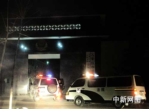 2008年12月31日早晨5:48分,石家莊市中級人民法院警車列隊進入石家莊市第二看守所。 李光/攝