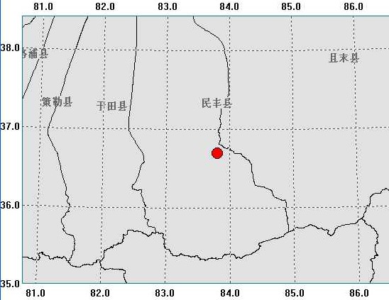 據(jù)測定,地震發(fā)生于當(dāng)天夜間21時(shí)52分(北京時(shí)間),震中位于北緯36.7°,東經(jīng) 83.8°。目前尚未接到有關(guān)人員及財(cái)產(chǎn)損失的報(bào)告。