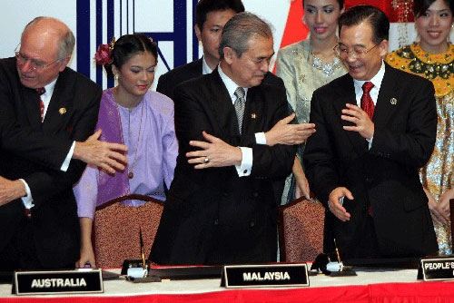 2005年12月14日,首屆東亞峰會在馬來西亞首都吉隆坡舉行,來自東盟十國、中國、日本、韓國、印度、澳大利亞和新西蘭的國家元首或政府首腦與會。會上,與會各國領(lǐng)導(dǎo)人簽署了《東亞峰會吉隆坡宣言》,討論通過了關(guān)于防控和應(yīng)對禽流感的宣言,并就加強(qiáng)合作、相互依存、共謀發(fā)展達(dá)成廣泛共識。溫家寶總理在首屆東亞峰會上發(fā)表了題為《堅持開放包容 實現(xiàn)互利共贏》的講話。