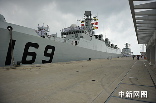 當(dāng)天上午九時許,創(chuàng)造中國海軍多項歷史、功勛卓著的“武漢”號、“海口”號導(dǎo)彈驅(qū)逐艦緩緩駛?cè)?三亞某軍港碼頭,受到岸上社會各界的熱烈歡迎。
