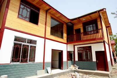 起初,科技廳征集了幾十套方案,最后傾向低成本的木結構住房。這樣一則保留了原來的風貌,二則原來震塌房屋的廢料可以再用,三則這里本來就產木材,就地取料,省時省力省錢。
