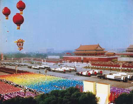 我當(dāng)時(shí)位于導(dǎo)彈方陣第一列靠近天安門城樓的一面。行注目禮時(shí),我看到檢閱臺(tái)、觀禮臺(tái)上一片歡呼。一看到導(dǎo)彈車,在觀禮臺(tái)上的中國女排姑娘們用力把鮮花向我們隊(duì)伍拋過來。家喻戶曉的中國女排都這樣為我們吶喊,作為第二炮兵方陣中的一員,真像被一股幸福的電流擊了一下,我當(dāng)時(shí)感覺真是太自豪了!
