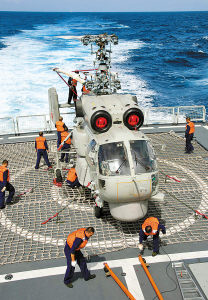 整個(gè)護(hù)航期間,編隊(duì)艦載直升機(jī)值班和飛行任務(wù)相當(dāng)繁重,警戒巡邏、應(yīng)召支援、勤務(wù)運(yùn)輸、垂直補(bǔ)給,都離不開(kāi)艦載直升機(jī),它們時(shí)刻處于戰(zhàn)備值班狀態(tài)。3月2日,“武漢”艦艦載直升機(jī)先后3次起飛,對(duì)40艘可疑目標(biāo)實(shí)施查證驅(qū)離,任務(wù)之繁重創(chuàng)造了護(hù)航單日之最。