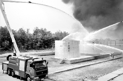 15時15分,就在圍剿接近尾聲時,現(xiàn)場突然出現(xiàn)意外,一名殘余“恐怖分子”引燃身上所攜帶炸藥,將廠區(qū)內(nèi)兩個化工原料儲存罐炸毀,造成大量有毒化學(xué)氣體泄漏。廠區(qū)內(nèi)頓時濃煙滾滾,火光沖天。面對緊急情況,消防力量馬上出擊,展開滅火、化學(xué)品罐堵漏、毒氣源稀釋等工作。同時環(huán)保、氣象和衛(wèi)生力量也馬上進(jìn)行空氣監(jiān)測、中毒人員緊急救治等工作。大約半小時后,人質(zhì)和中毒人員全部得到緊急救治,廠區(qū)周圍有毒氣體濃度也降到安全值以內(nèi),周邊地區(qū)和首都北京的安全得到了保障。演習(xí)結(jié)束。