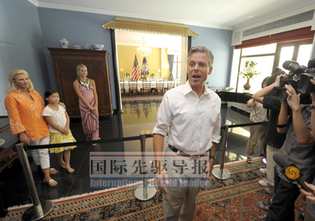 《國際先驅導報》記者陳璟貝發(fā)自北京 “我聽說在北京的每一天都是這么得漂亮,是嗎?”午后的陽光灑落在美國駐華大使府邸的小花園,它的主人洪博培展開雙臂,以標準的普通話為自己在中國的首次記者會開篇。