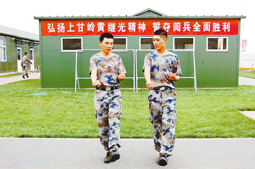 在方隊,易治安和武龍相處時間最長,訓在一起、吃在一桌、睡在一屋,基本上形影不離。久而久之,彼此心領神會。武龍說:“我們倆散步其實都是在以步代車進行模擬訓練。易班長往往會突然間加大步子,暗示我‘加速’,我就會在最短的時間內跟上。他習慣把訓練中的配合帶到生活中讓我體會,從而達到密切協同!闭f起他倆的默契,同室戰友笑著說:“他們倆睡上下鋪,晚上打呼嚕都一致!”
