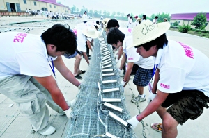 折疊后還是不行,一方面太沉,整幅網幕重4至5噸,故分成9小塊,每塊重500公斤;另一方面不能保證煙花毫發無傷,只要車顛簸,網幕還是會磕碰。