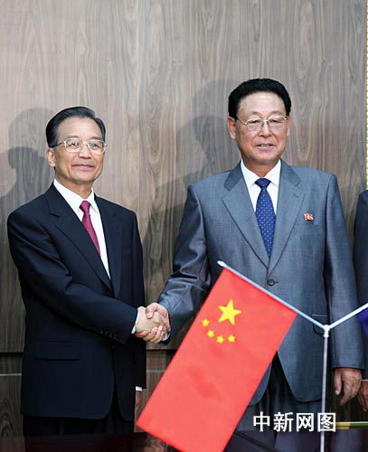 中共中央政治局常委、國(guó)務(wù)院總理溫家寶四日抵達(dá)平壤進(jìn)行正式友好訪問(wèn),他當(dāng)天在平壤萬(wàn)壽臺(tái)議事堂同朝鮮總理金英日舉行了會(huì)談。隨后兩國(guó)總理一同出席了有關(guān)文件的簽字儀式。