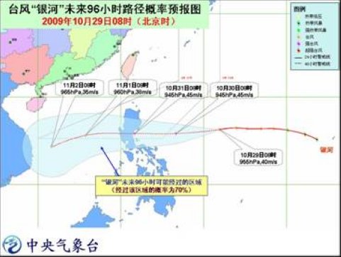 中新網(wǎng)10月29日電 今年第21號(hào)臺(tái)風(fēng)“銀河”的中心29日8時(shí)位于菲律賓馬尼拉偏東方大約1190公里的西北太平洋洋面上,就是北緯16.1度、東經(jīng)132.0度,中心附近最大風(fēng)力有13級(jí)(40米/秒),中心最低氣壓為955百帕。