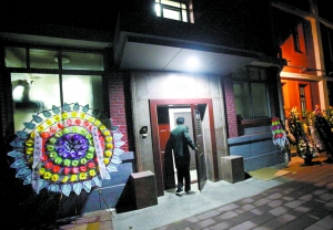 夜色還未褪盡,記者來到位于航天橋航天大院內的錢學森靈堂外。位于一層的靈堂此時已是燈影幢幢,單元門外擺放的花籃、花圈并沒有被撤走,依舊簇擁著守候在靈堂門外。