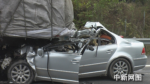 由于車身大部分卡在貨車底部,車上的3男1女已經當場死亡,車內車外血流滿地。駕駛員一頭栽在外面當場死亡。為了將四名遺體順利抱出,消防官兵迅速展開救援行動,最后利用高速牽引車,高速搶險救援車及千斤頂才將緊緊纏繞在一起的兩車相脫離。