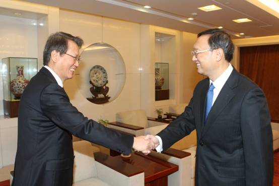 楊潔篪感謝辛正承在任內為中韓關系發展所作積極努力,希望他在新的工作崗位上繼續為中韓關系發展貢獻力量。楊潔篪表示,中韓兩國有著廣泛的共同利益,中韓關系前景廣闊。中方愿同韓方一道共同努力,推進中韓關系不斷向前發展。