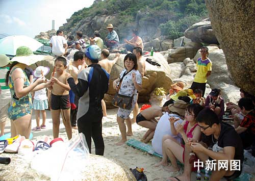 2月4日上午,執法人員接到舉報,三亞亞龍灣海域附近的百福灣每天都有數百人前去潛水、海底觀光。但是,等到聯合執法人員趕到時,偌大的海灘上只有五六十人在海邊淺水區或游泳、拍照、或燒烤等,潛水、海底觀光的一個也沒有發現,除了岸邊的礁石上有數十個潛水呼吸用的“吸嘴”外,連潛水必備的器材一套也沒有發現。