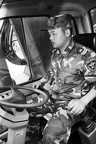 說得容易做來難。王益春學習挖掘機駕駛不久,在一次沼澤地作業中,駕駛的74式Ⅱ型輪式挖掘機兩個前輪下陷泥潭,急得滿頭大汗。“掛擋、加油、撐臂……”班長鄧舜之將“鐵爪”往前一撐,前推后拉不足2分鐘,挖掘機重顯威風。“平時勤學苦練,戰時才能適應復雜環境。”王益春暗下決心,要像班長一樣嫻熟操作“鐵爪”。平時作業時,爛泥潭、沼澤地等臟活難活,王益春總是積極主動搶著干,休息間隙就虛心請教苦練。晚上,別人看電視,他卻對照教材,悉心研究挖掘機構造原理,把能拆開的零部件拆開看個究竟。他告訴記者,要使平底坑壁直底平,關鍵就是上下左右兩手的配合操作,“鐵爪”長度、開口大小、鐵臂長短,牢記這些數據不但可當尺子用,還能提高精準度。為此,他一有空就把小石頭吊在樹枝上,從不同角度用“鐵爪”去觸摸小石頭,還在操縱桿底座上刻上刻度,根據土質的松軟程度,感悟拉操縱桿的力度。