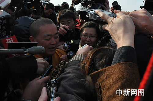 被媒體圍住的釋永信,突然向相反的方向“突圍”,有記者笑稱,方丈要施展“少林功夫”了。不幸的是,釋永信“突圍”之后再次陷入重圍。