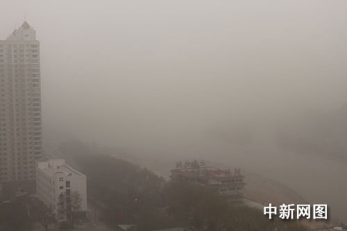 3月16日午后,蘭州還是陽光明媚,傍晚卻成了朦朧之城。18時許,蘭州遭遇沙塵天氣侵襲。中新網發 張玉璽 攝